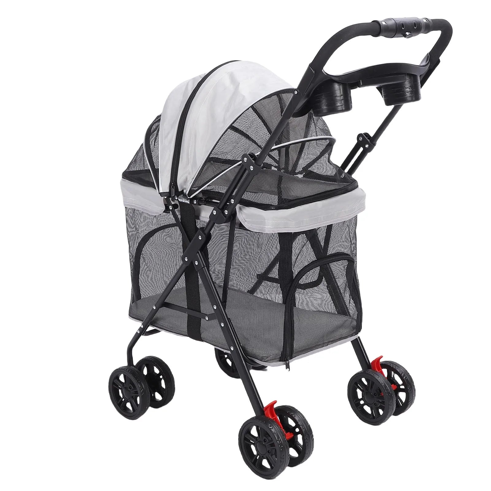 Foldable Pet Stroller for Dogs and Cats – One-Click Folding Design with Sunshade and Cup Holder