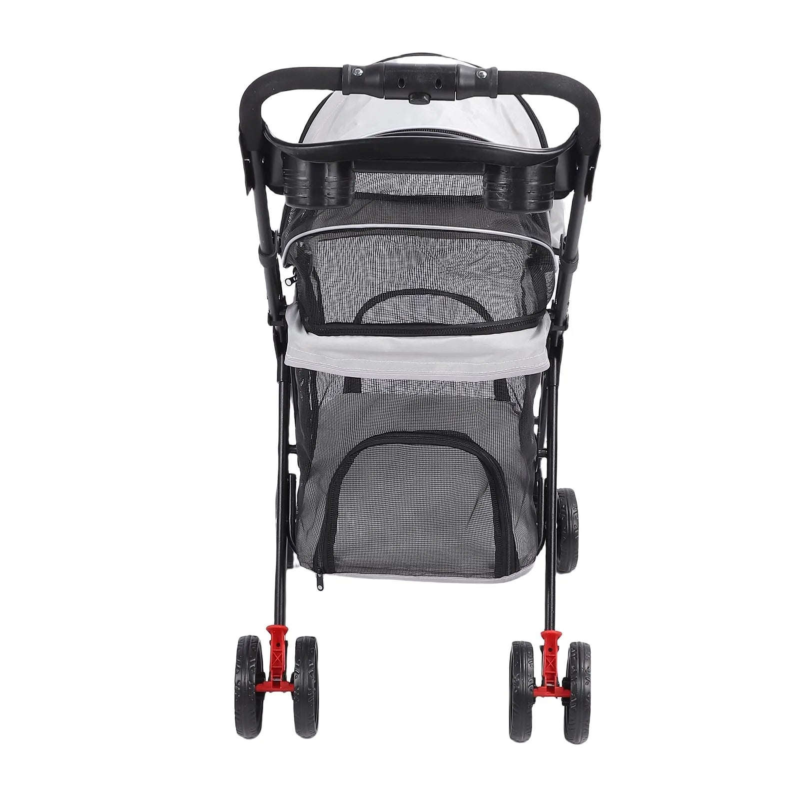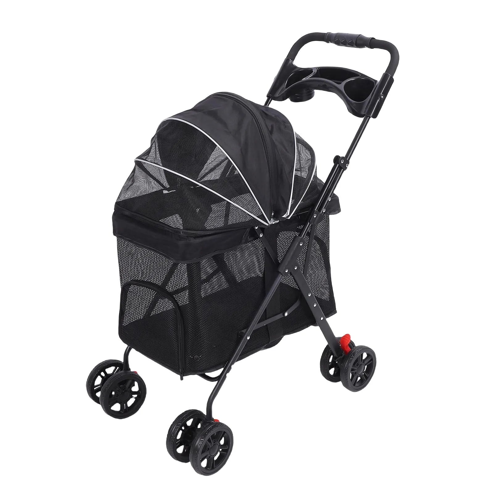 This pet stroller provides a practical solution for pet owners looking for a portable and easy-to-use transport option.