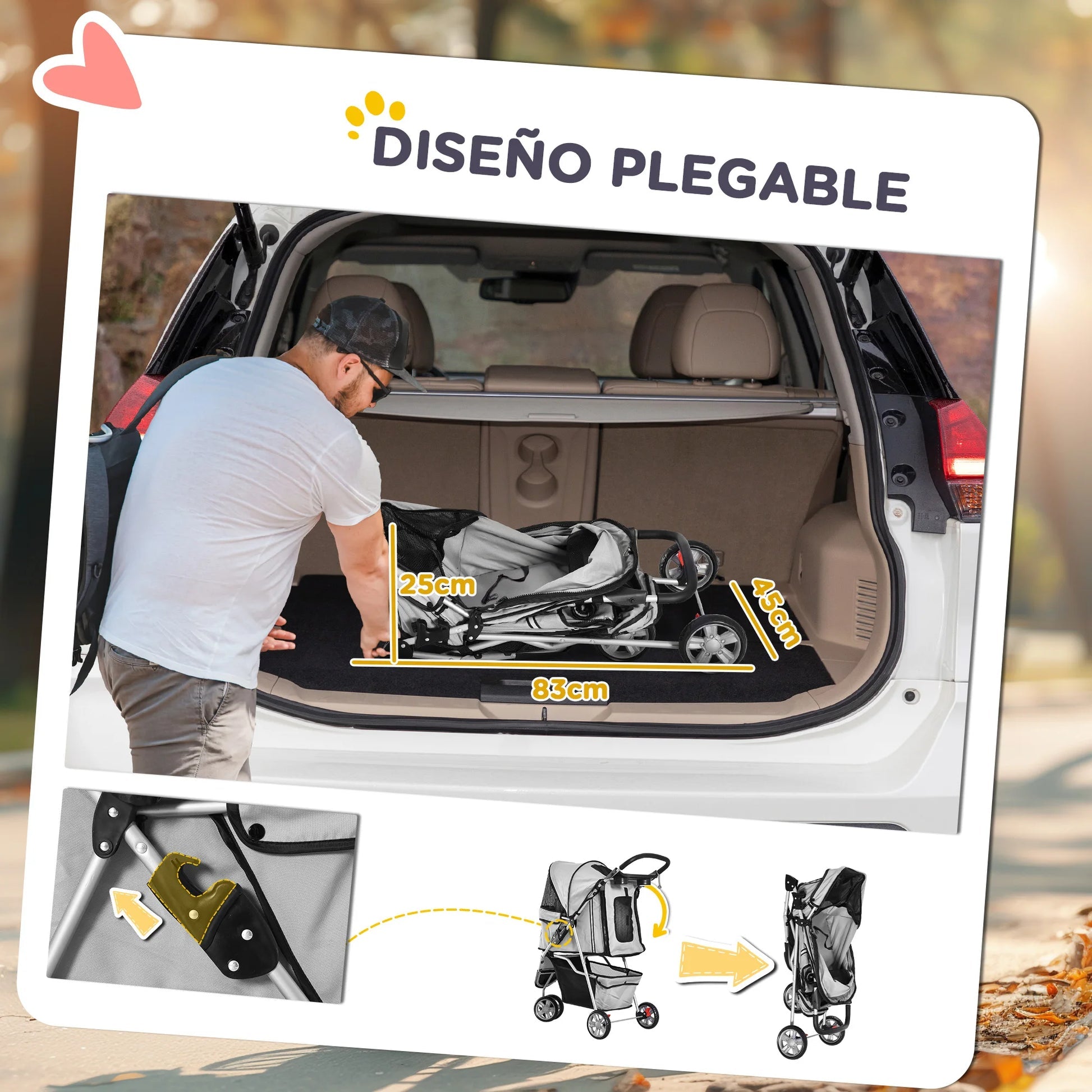 The PawHut foldable pet pram is designed to provide a practical and comfortable transport solution for dogs and cats. Featuring a sturdy frame and smooth-rolling wheels, it allows pets to travel securely during walks or outdoor outings.